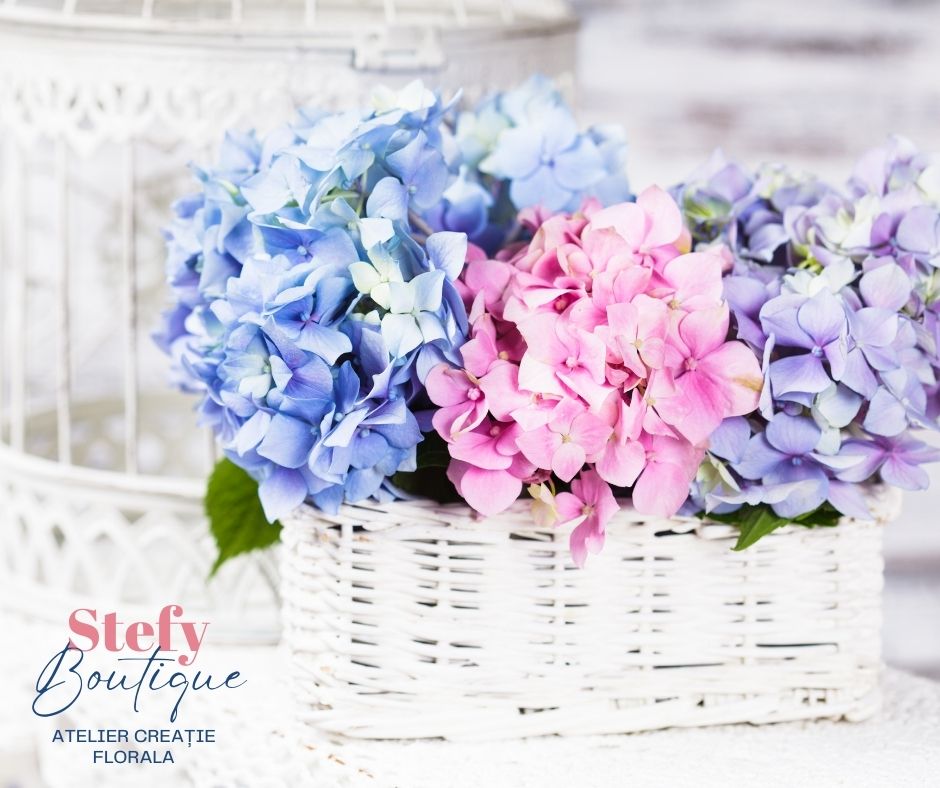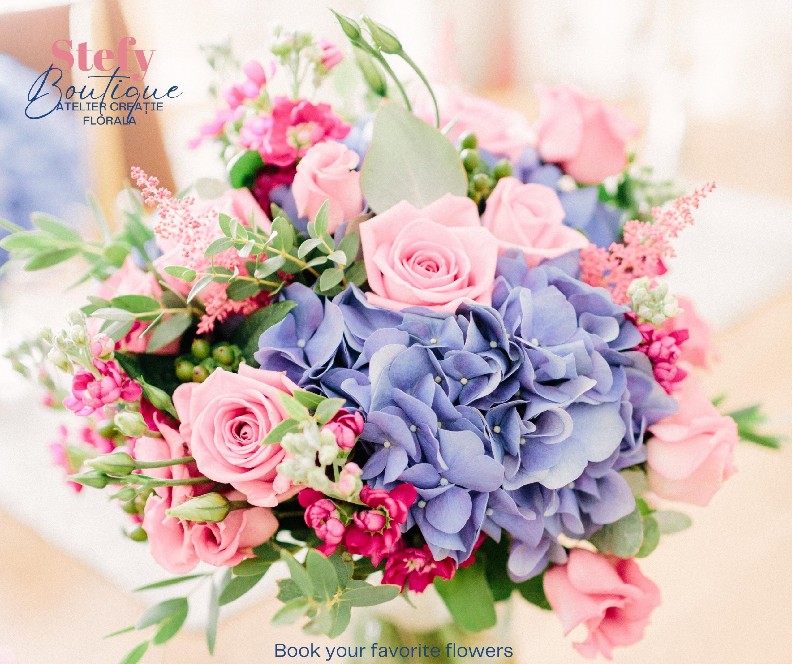 🌸 Acest aranjament floral cucerește prin farmecul delicat și sofisticat al hortensiilor, combinate armonios într-o paletă pastelată de albastru seren și roz pudrat. Hortensii albastre – Aduc profunzime și calm, evocând serenitatea cerului sau a mării. Sunt plasate strategic în aranjament pentru a crea ancoră vizuală. Hortensii roz – Adaugă căldură și delicatețe, creând un contrast subtil, dar armonios cu nuanțele de albastru. Accente verzi (opțional) – Frunze de eucalipt, ruscus sau ferigă pentru a oferi prospețime și structură. Vasul sau suportul – Poate fi un coș rustic, o cutie elegantă din lemn alb, sau un vas ceramic simplu în tonuri neutre, care să nu distragă atenția de la frumusețea florilor. Pret 290 lei